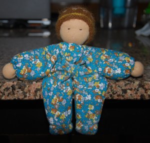E’ una bambolina di stoffa ripiena di miglio, con un bel cappellino di lana ed il visetto tondo con i lineamenti appena accennati, così da permettere al bambino di usare tutta la sua fantasia e vederci…chissà cosa!