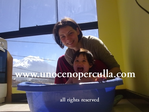 Io però mi preoccupavo, allora pensammo ad uno stratagemma: mi sarei infilata nella mia amata vasca da bagno e l’avrai lavata lì dentro. Stando fra le mie braccia forse di sarebbe sentita più sicura. E difatti funzionò: smise di piangere e cominciò a conoscere l’acqua poco a poco, fino a farci amicizia e divertirsi.
