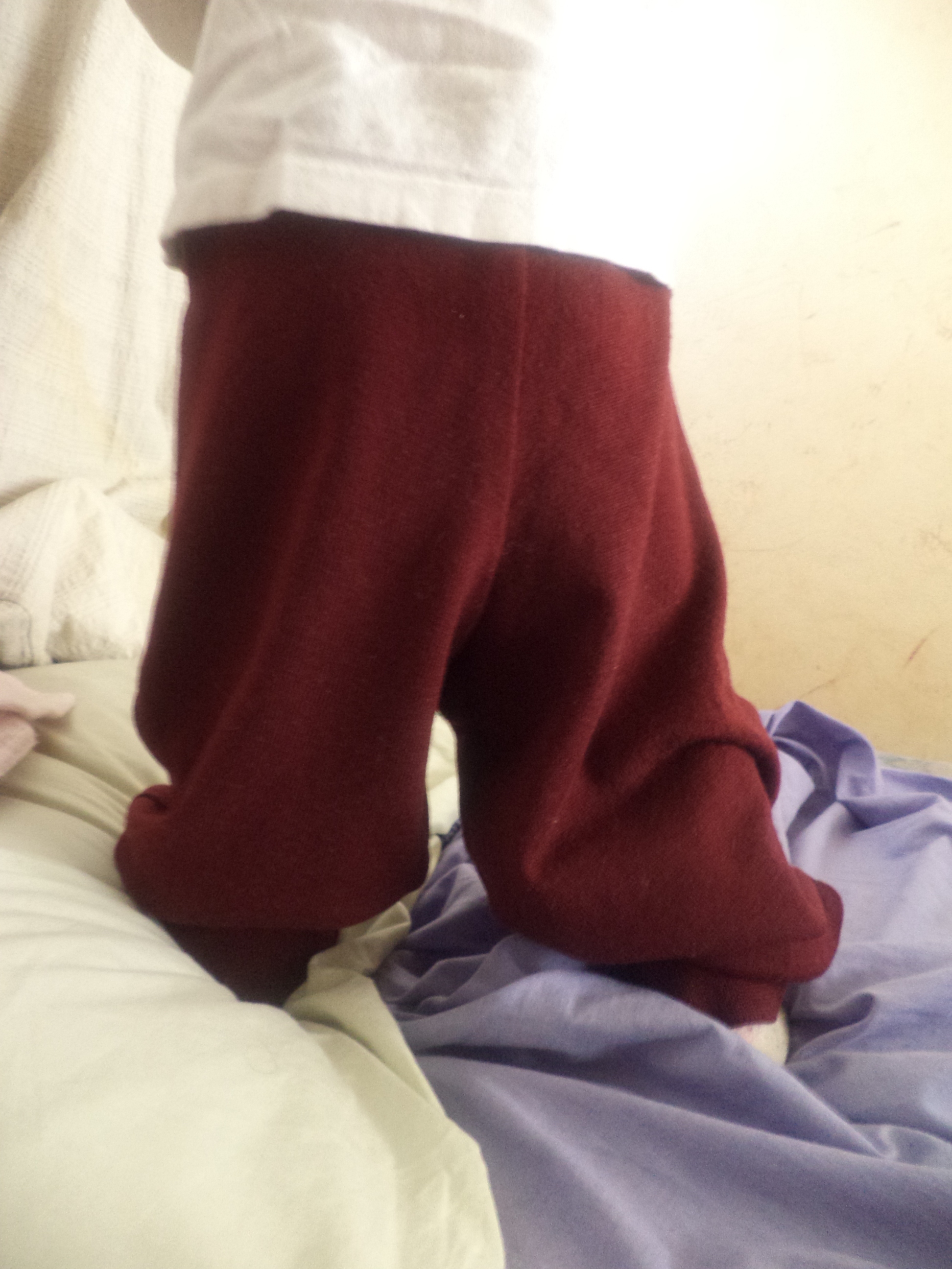 nel pacchetto che ci ha fatto arrivare qui in Perú tramite mio suocero, oltre a maglioncini fatti ai ferri e “colori da dita“, ci ha messo dentro un altro paio di pantaloni-maniche color vinaccia.