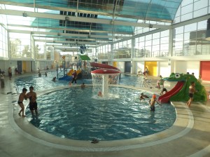 L’acqua delle vasche arriva direttamente da una sorgente termale, quindi un’acqua sana e curativa ma…fredda. E la cosa piú ridicola é che la parte piú tiepida é la piscina degli adulti mentre in quella per i bambini, dato che l’acqua viene fatta circolare continuamente per gli scivoli, la fontana ecc., resta sempre ghiaccia marmata 😦