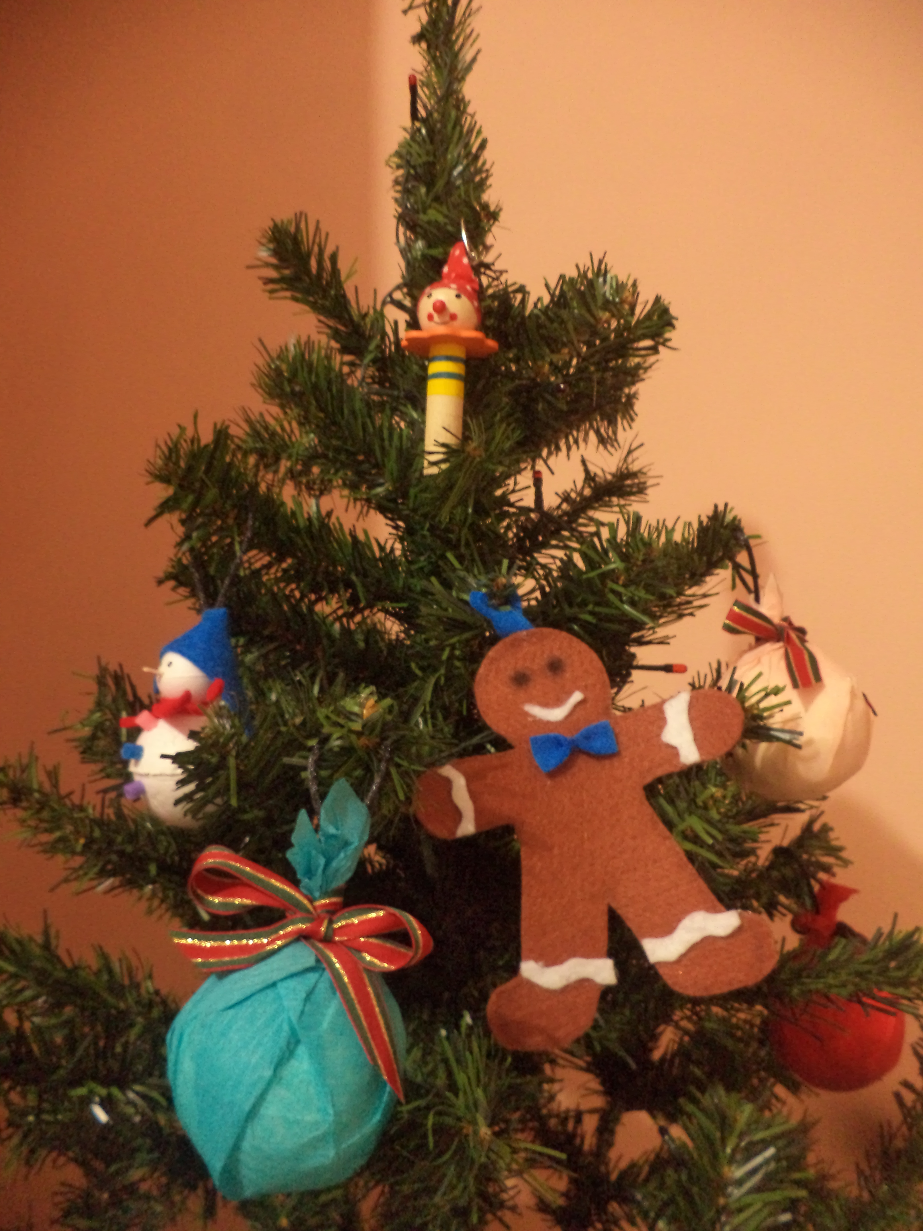 Facendo un giro in rete ho trovato una miriade di disegni diversi da poter copiare e reinterpretare, quindi mi son messa a ritagliare e poi incollare con l’aiuto della Regina della festa, che disegnava le faccine di gnomi e pupazzi, sceglieva i colori per i dettagli e poi attaccava e staccava in continuazione dall’albero le nostre creazioni.