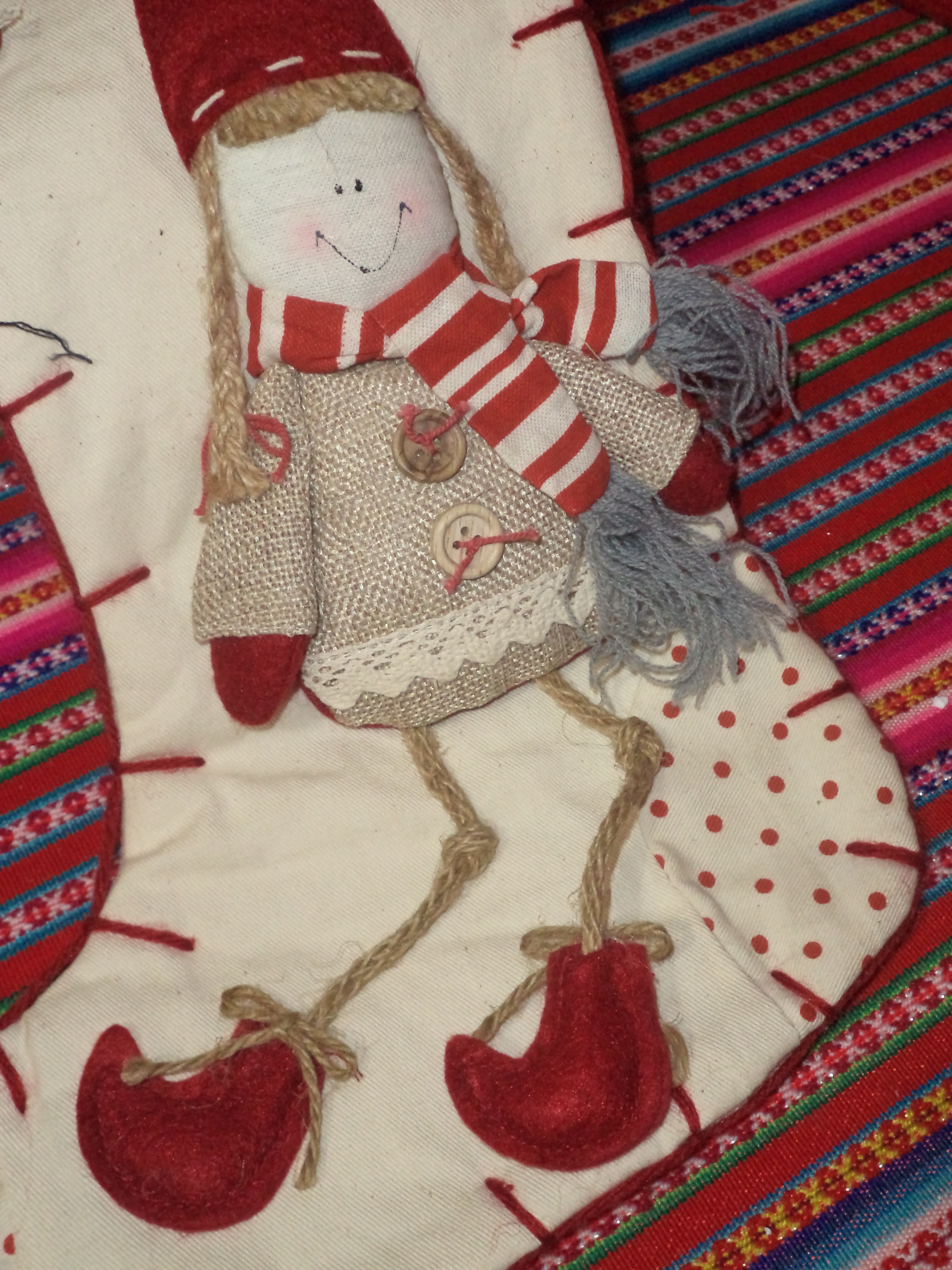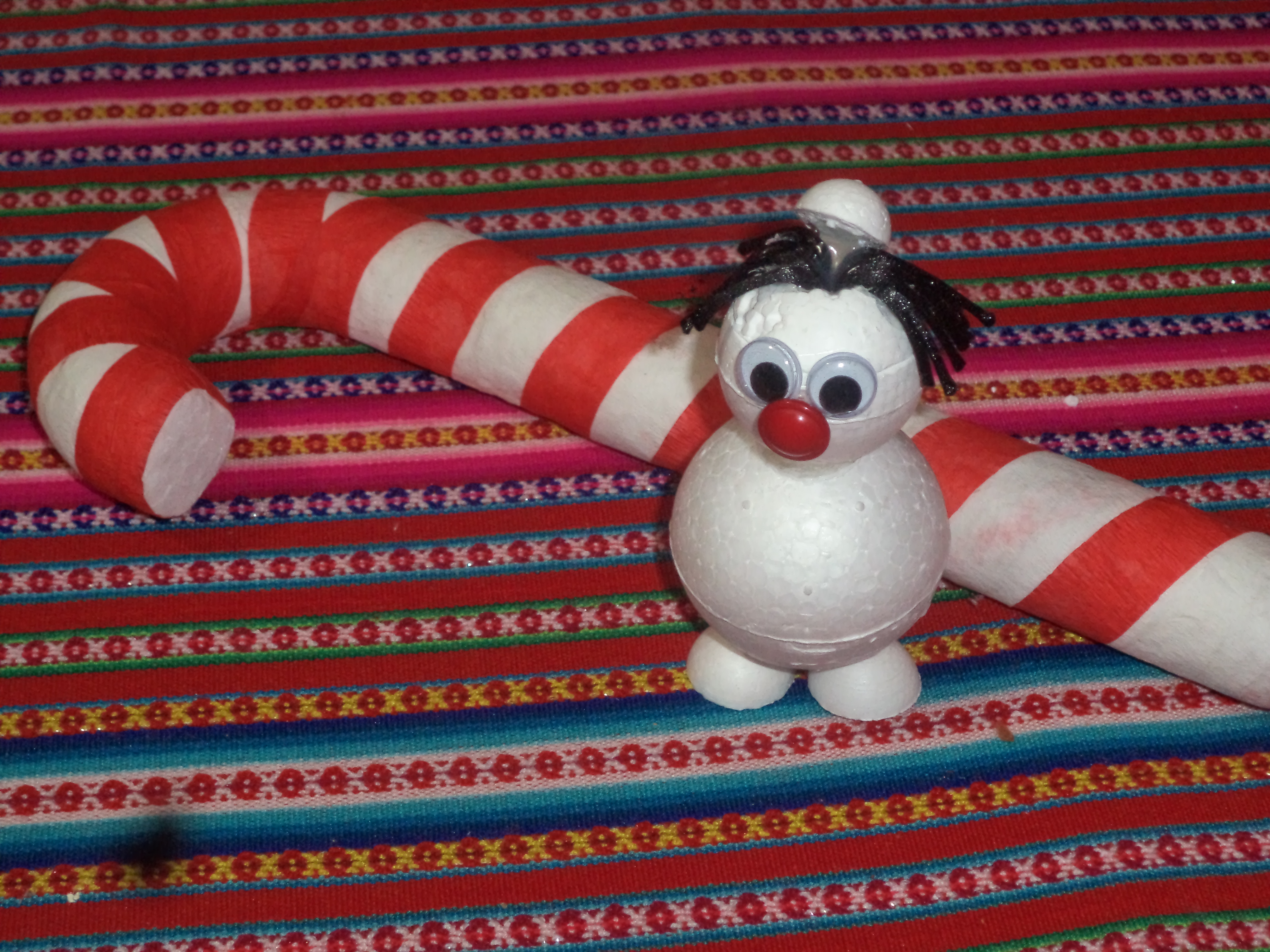 Questa volta poi si é davvero superato: aveva nascosto da qualche parte un grosso sacco di palline di polistirolo di tutte le dimensioni (c’era anche un bastone lecca-lecca!), nastri di stoffa di tutti i colori e cappello+barba di Papá Noel.