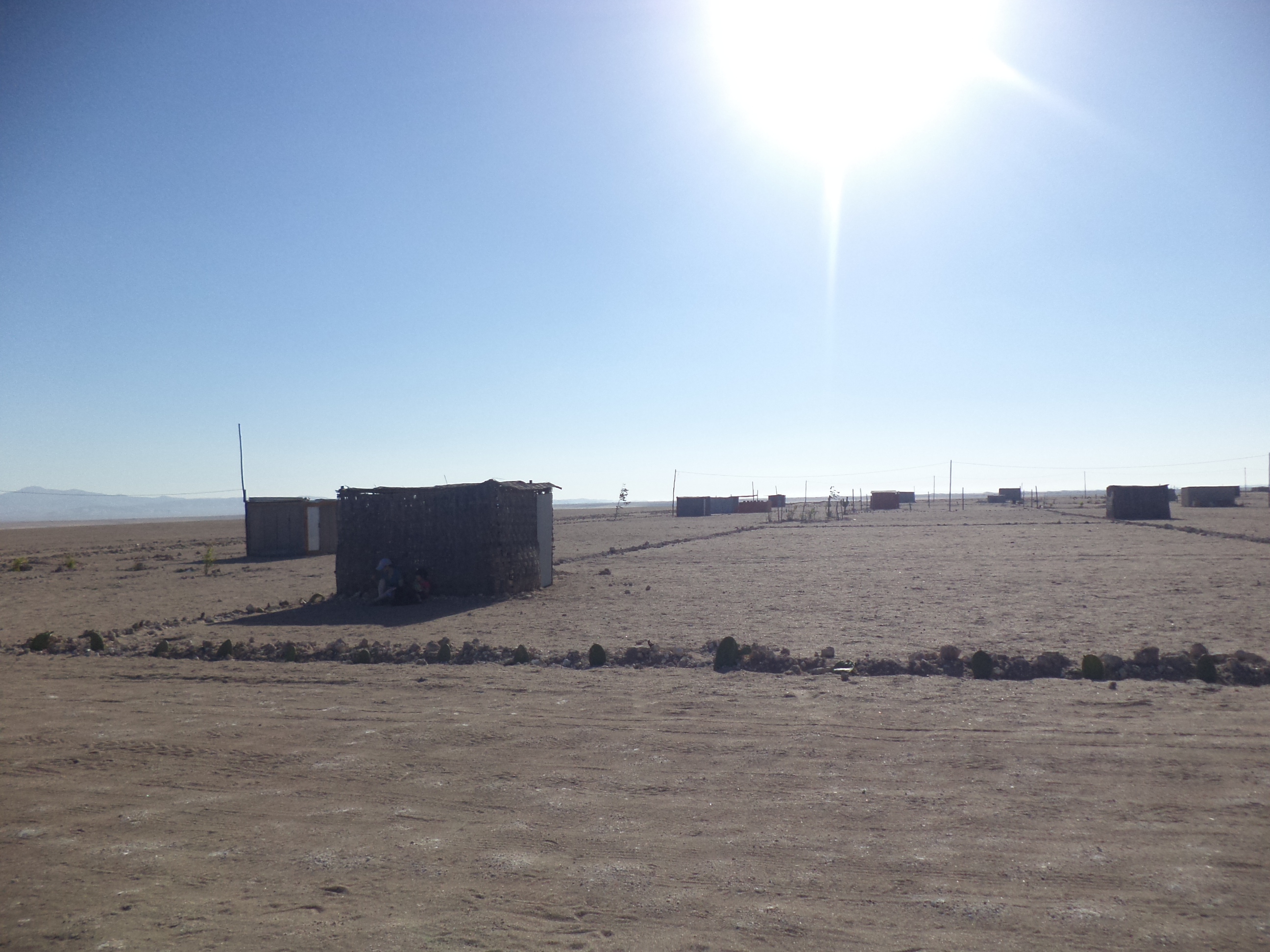 Cosí, dopo un paio d’ore di bus, siamo arrivati al fatidico S.Camilo, dove babbo voleva mostrarci un terreno che potrebbe rivelarsi un’occasione e che, naturalmente, mi ha lasciata non poco interdetta. Mentre noi ci guardavamo intorno e discutevamo del possibile futuro di quella zona divisa in parcelle perfettamente uguali che, se oggi possono sembrare un paradiso, secondo me nel futuro diventeranno un centro infernale di tipica vita mondana andina (che non é precisamente il mio stile…), la signorina giocava tranquilla con la sabbia, raccogliendo pietre su pietre e poi distraendosi con il cagnolino di un’ipotetica vicina che giá vive in una baracca tirata su in loco.