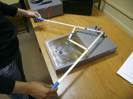 Poi si passa ad un percorso magnetico che devi seguire con un ago di metallo manovrato da una specie di forbice enorme. Ogni volta che esci dal percorso suona l’allarme e devi terminarlo entro un tempo stabilito.