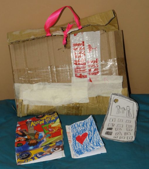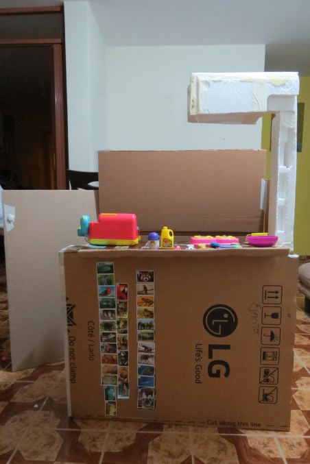 Perchè sia ben chiaro che tenere i figli a casa non significa “fregarsene”, anzi! In questi ultimi 2 mesi io non ho avuto nemmeno il tempo per depilarmi (ORRORE)! Ho continuato anche ad andare al lavoro ma quando sono a casa, a parte le ore sedute davanti ai libri, facciamo insieme le faccende domestiche, cuciniamo, stendiamo i panni, giochiamo e inventiamo. Sì, perchè mentre io ritagliavo lettere e numeri, anche lei ritagliava per fare agende, borsette di cartone e, con il papà, ha creato anche il suo negozio personale.
