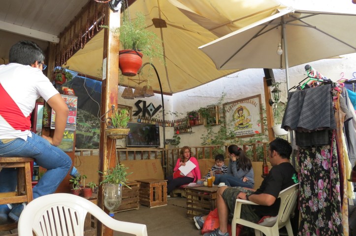 Mikcao è un barettino che offre caffè e cioccolato organico deliziosi ma dove non va quasi mai nessuno, un po` di sana pubblicità poteva solo fargli bene, per questo hanno offerto il loro giardino come spazio libero per il mercatino.