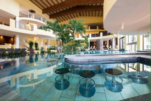 - Vari turni nella grotta con pioggia tropicale che ti arriva sulla testa da un’altezza di 7 metri , percorso Kneipp e cromoterapia