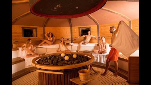 - Rituale Ice Balls nella sauna delle erbe, dove un addetto rompeva palle di ghiaccio intrise di oli essenziali sui carboni ardenti mentre ci sventolava (per aumentare gli effetti dell’aromaterapia) con un asciugamano e passi di danza a ritmo di musica