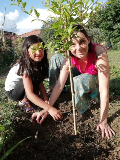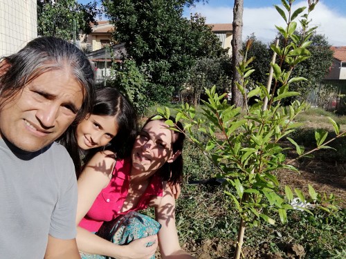 Noi lo abbiamo piantato nel giardino della vecchia casa di famiglia, quella in cui sono nata e cresciuta, e da cui sono rimasta lontana per oltre una decade. Quindi tornarvi e piantarvi l’albero a sei mani, con la nuova famiglia che mi sono creata lontano, per me è stato addirittura un atto doppio.