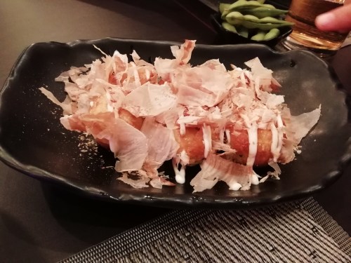 Quando siamo scese (io e mia figlia) i tre ragazzi erano già tutti intenti a preparare i nostri piatti in sincrono, come in una piccola catena di montaggio verso il risultato finale: la presentazione dei piatti, tutti decorati con semi ed erbette, dalla ciotola di riso bianco ai Takoyaki svolazzanti.