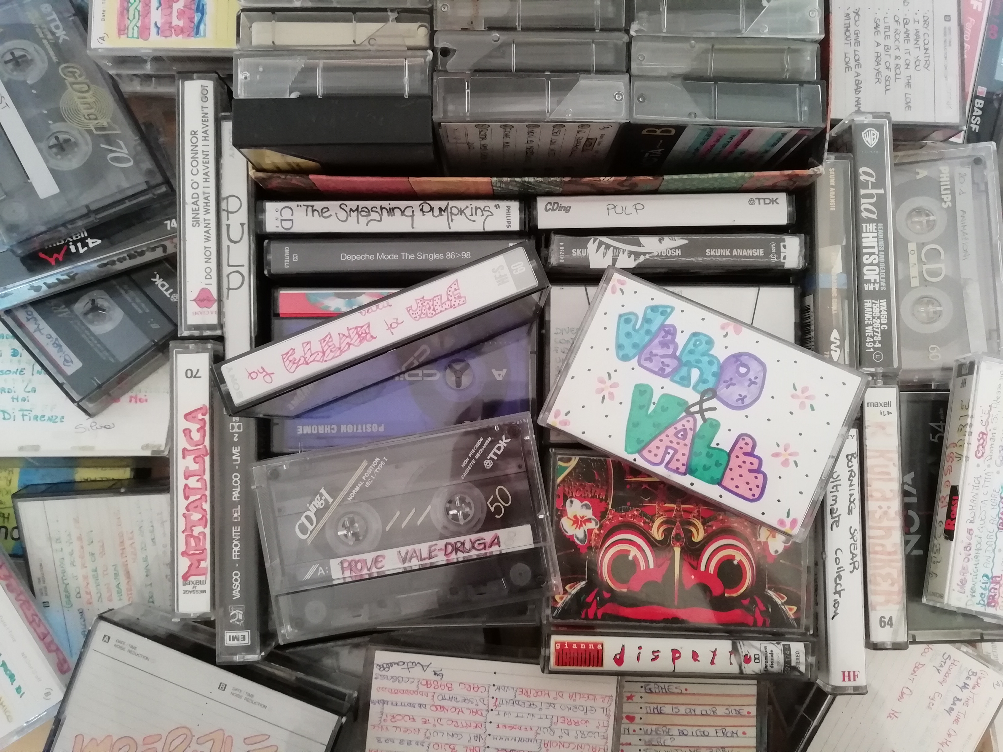 Poi arriviamo al reparto digitale e troviamo le musicassette. C’è una scatola piena di cassettine magnetiche per lo più non originali e, paradossalmente, di ancora maggior valore. Sì, perchè le cassette registrate a mano erano pezzi di vita e cuore: a seconda del momento e dello scopo, registrare una musicassetta era un gran lavoro. Sceglievi il tema, il cantante favorito, il messaggio “nascosto”, il momento da ricordare e che proprio quella specifica canzone ti ricordava. E te lo ricorderà per sempre! Ogni volta che ascolto How do you do, ad esempio, mi ricordo di quando tornavamo a casa dopo il liceo e il mio amico Leo – che aveva già la patente e mi accompagnava – mi faceva tirar fuori da sotto il sedile il suo mangianastri che fungeva da autoradio; io me lo piazzavo sulle gambe, schiacchiavo “play” e la festa aveva inizio. Ovviamente a suon di Roxette, che giravano in loop per 90 minuti…